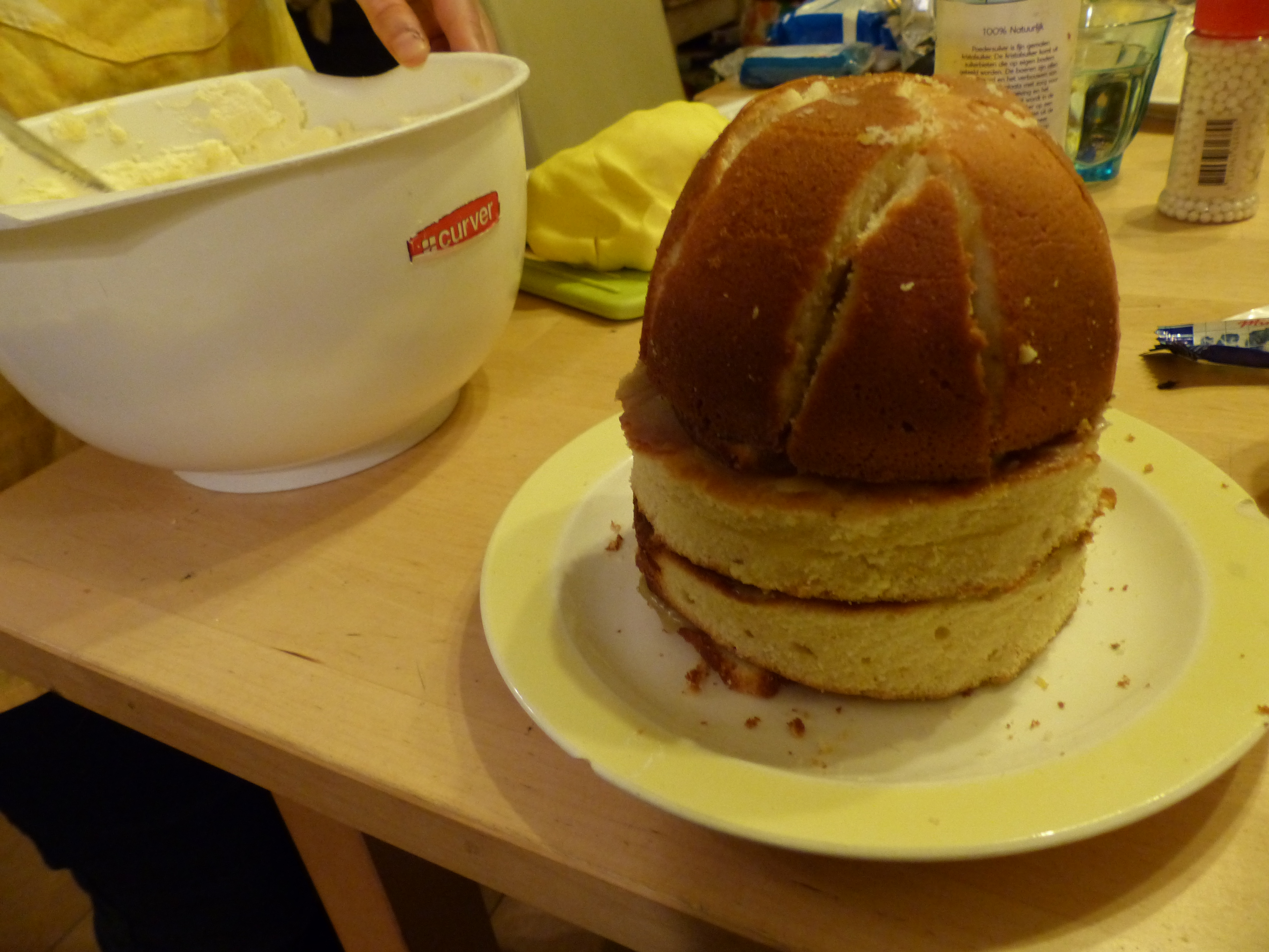 Where was I? Oh, right, Jitske wanted to make a cake looking like a minion for her boyfriend, and she asked me to help. I went over to her place on Sunday afternoon, and we spent the next four and a half hours on the most beautiful cake we ever made together. It wasn’t even done yet at that point, but I had to leave since I had promised to have dinner at my parents that evening. Our precious minion didn’t have arms and legs yet, so Jitske worked on a little bit longer and sent me a few pictures later that evening…