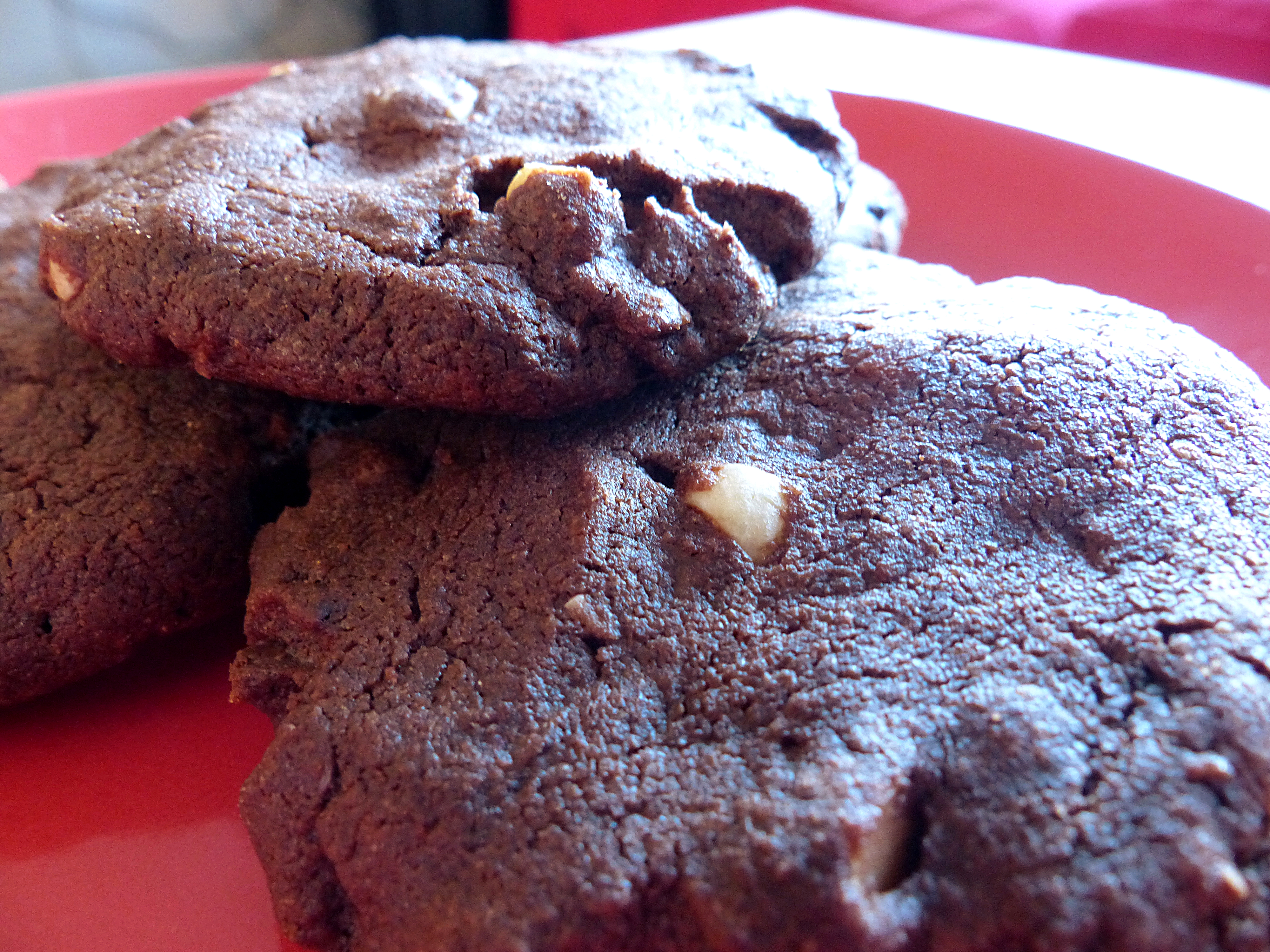 Remember the little project I started a few weeks ago, called Cookie Rookie? Well, since those raisin and hazelnut cookies turned out really good, I decided to try a new recipe this weekend! I had a real craving for chocolate, so it didn’t take me very long to decide what kind of cookies I would bake this time: chocolate cookies, of course! I combined some recipes to suit my fancy, and also added some hazelnuts because I was very pleased with the way they helped flavour the raisin and hazelnut cookies last time (and chocolate and hazelnuts are an amazing combination, of course).