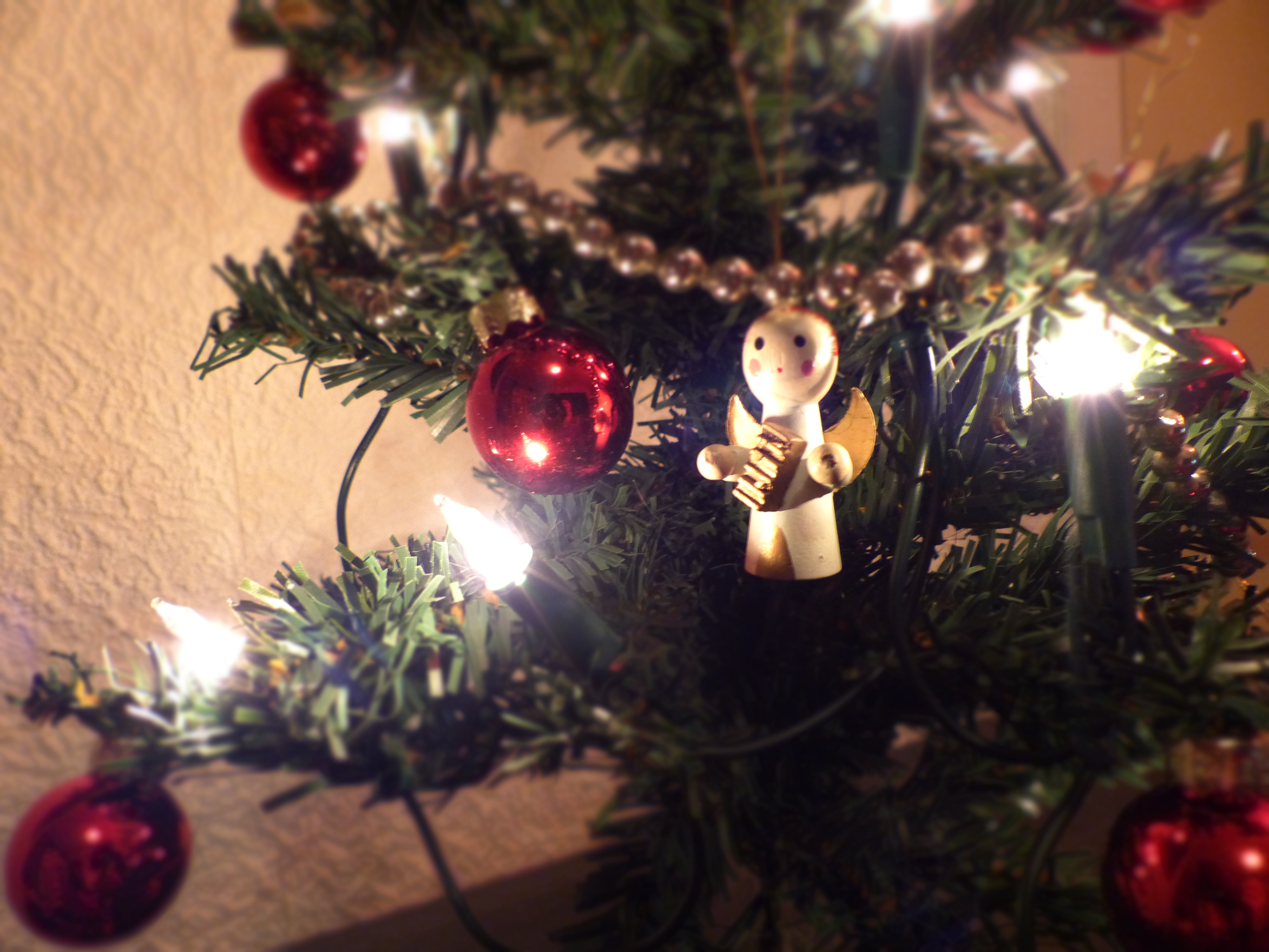 After dinner I went home again and while biking through the streets I looked into all the windows and saw Christmas trees and other sparkly decorations everywhere. It just made me feel so festive! So when I got home I put on some Christmas music again, and took some pictures of my own tiny little fake tree which has been making my living room look Christmassy for about two weeks now…