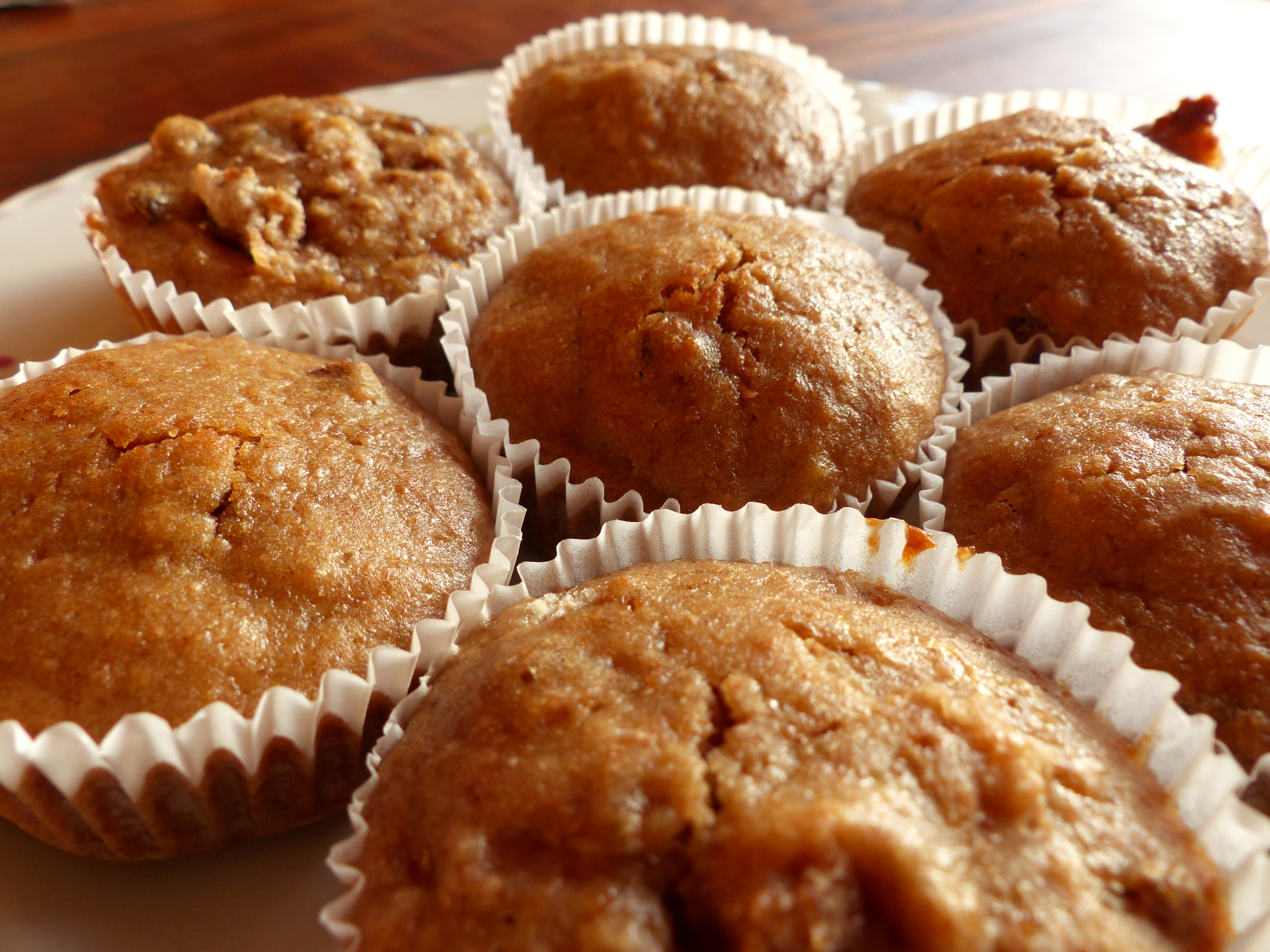 Note: Your muffins will probably come out a few shades lighter than mine — I only had about 70 g white caster sugar, and had to supplement it with dark caster sugar.