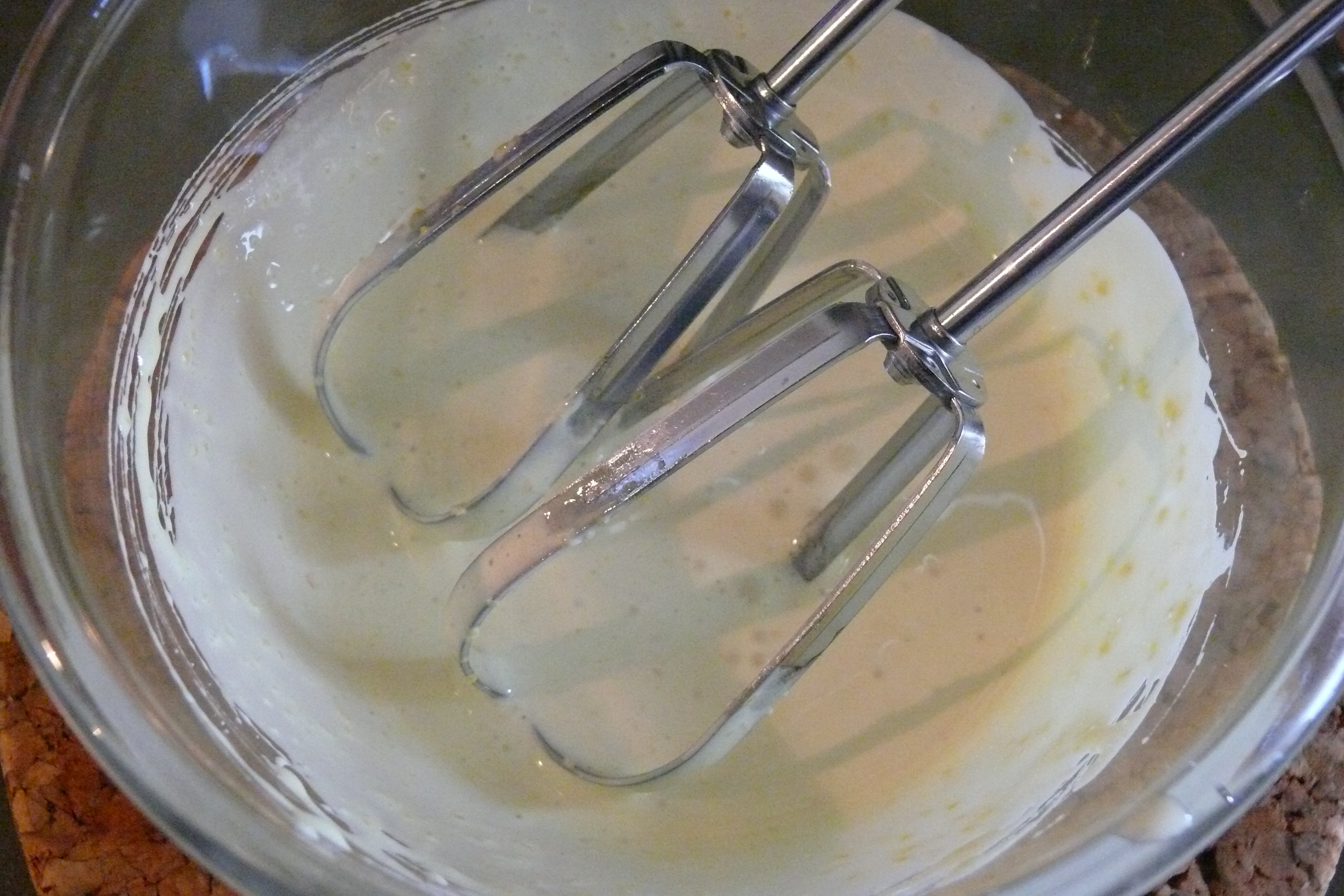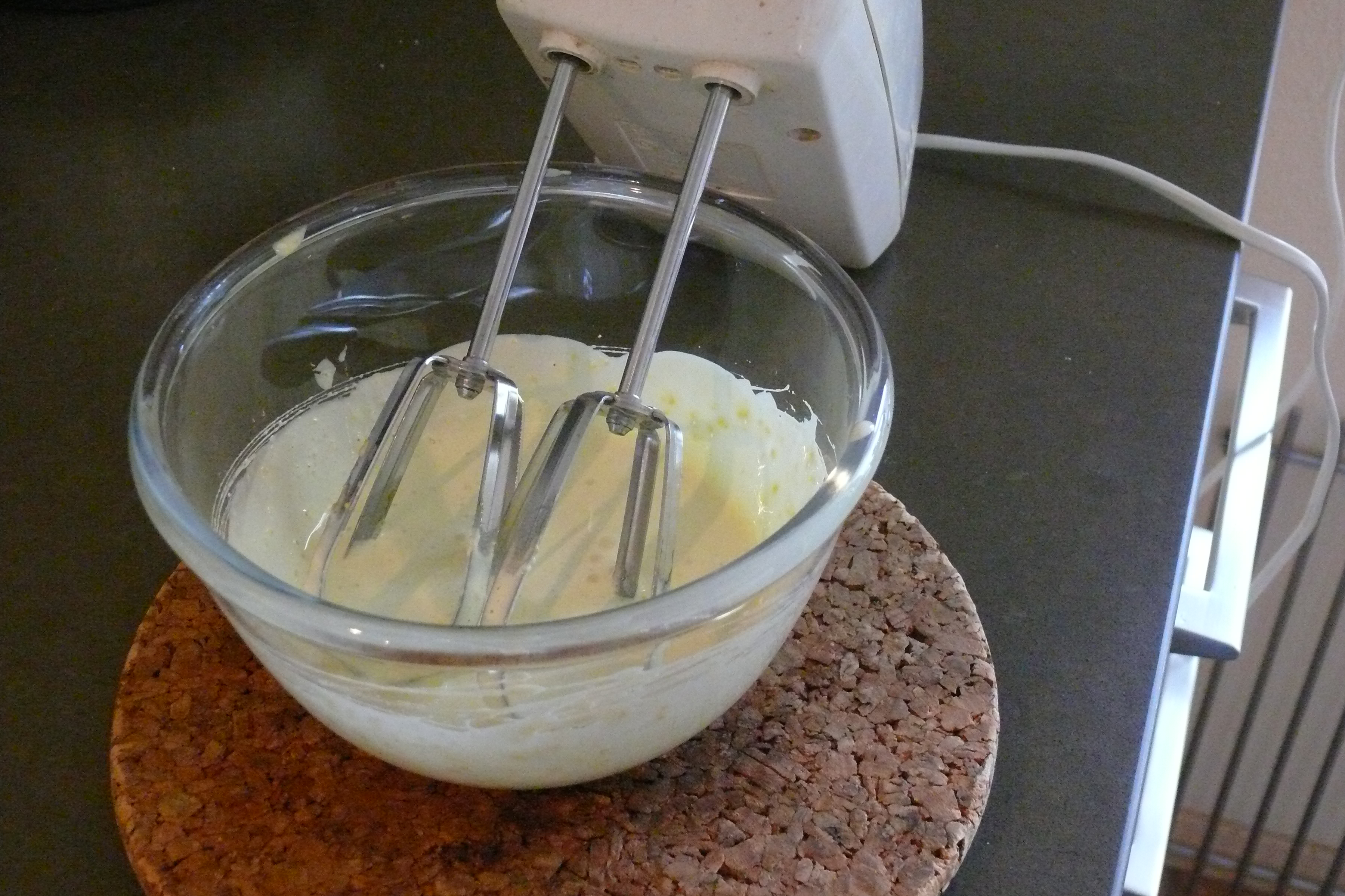 I eventually never got to the baking part, though, because I got bored and annoyed way before that. After wasting two eggs because they wouldn’t split right, and mixing it together with the sugar and the lemon zest it was time to get the electric mixer out and whisk as if my life depended on it.