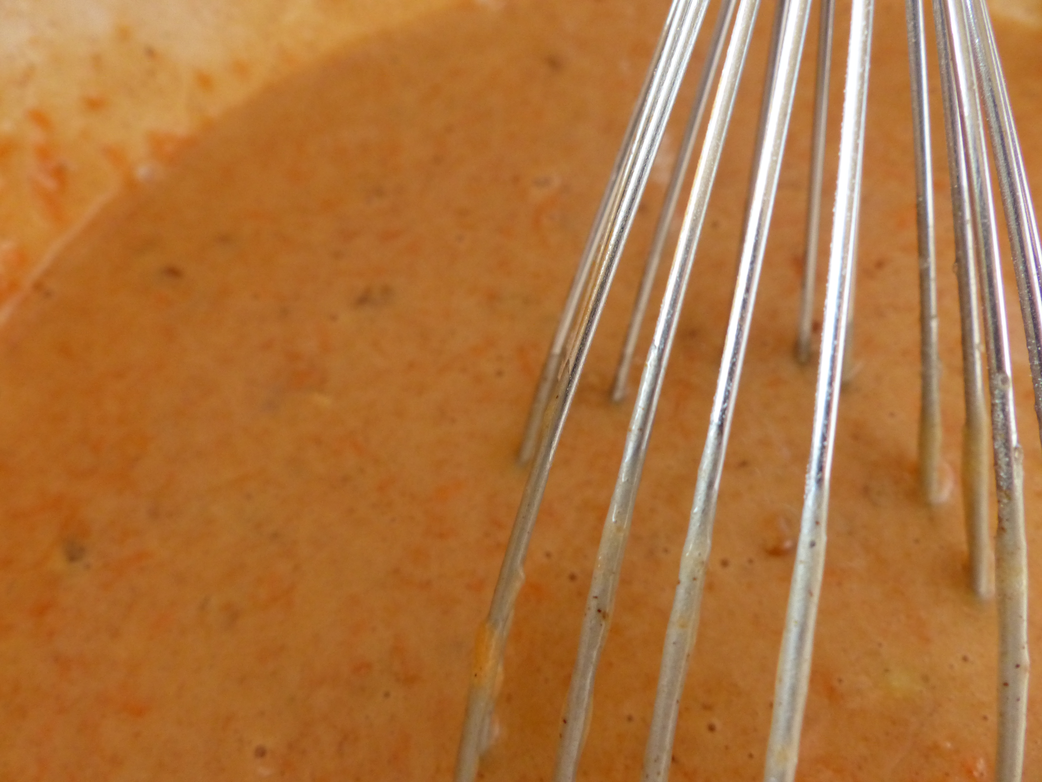 1. Mix together eggs, oil, sugar and vanilla First of all, you need to beat together the eggs and the sunflower (or vegetable) oil, and then add the two types of sugar and the vanilla flavouring and mix until everything is evenly mixed. I just used a whisk for everything.