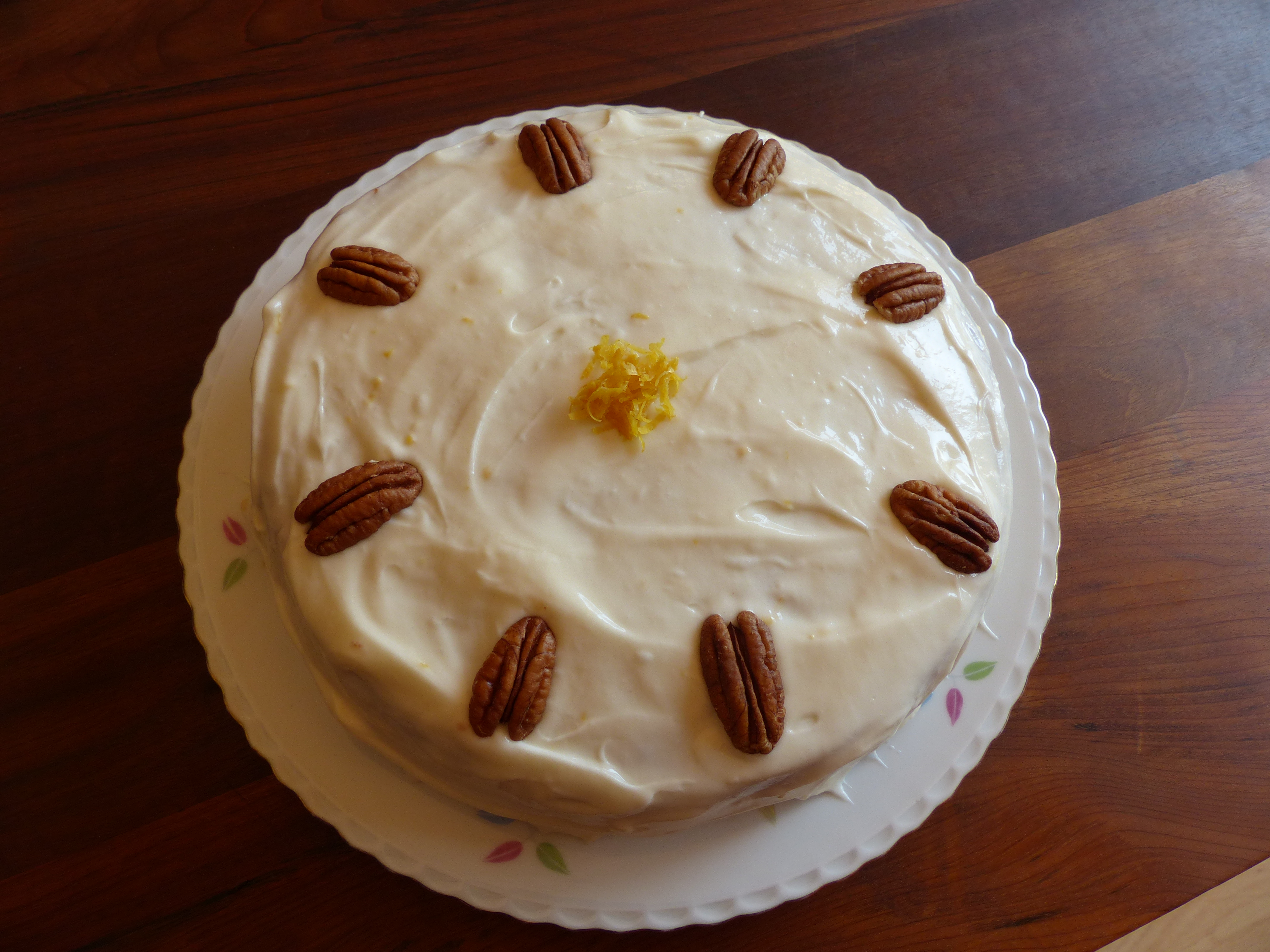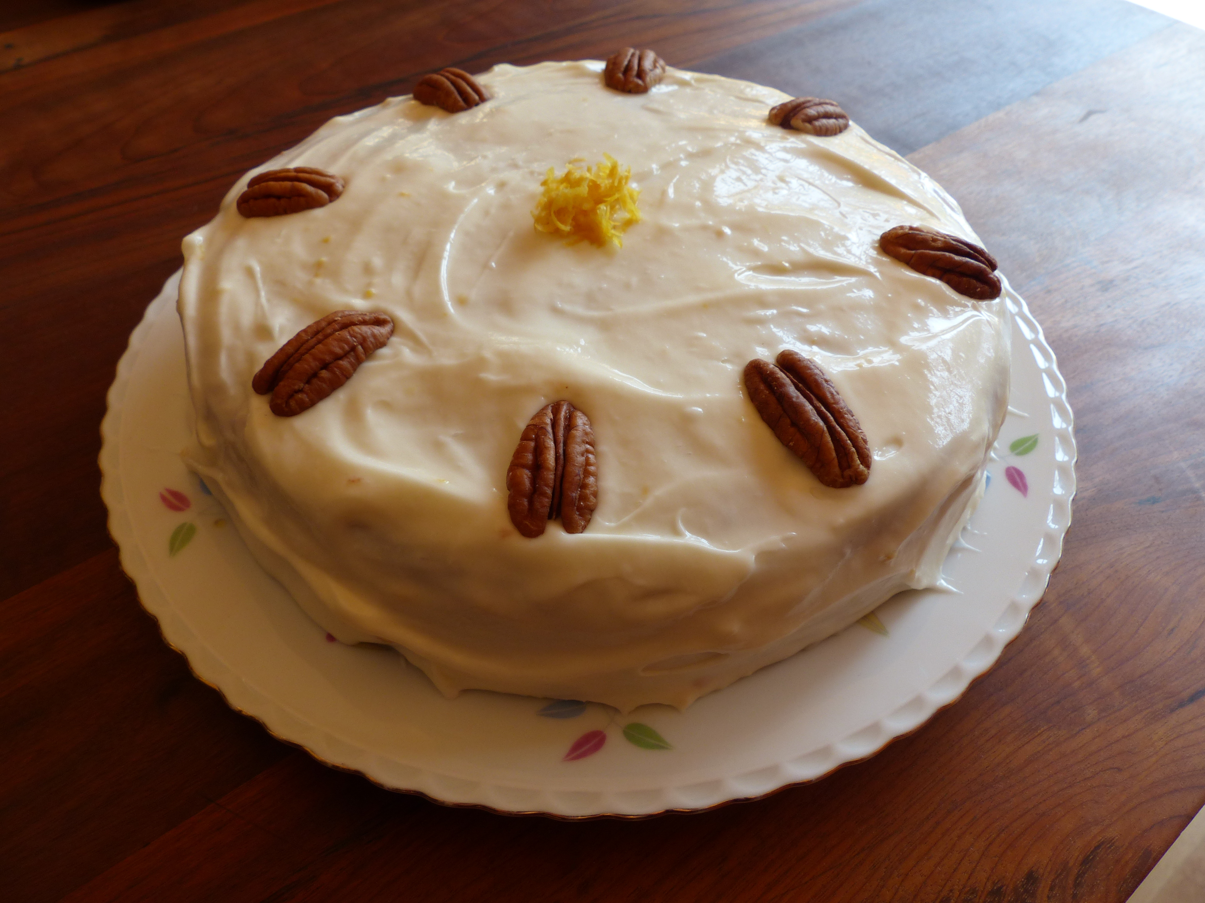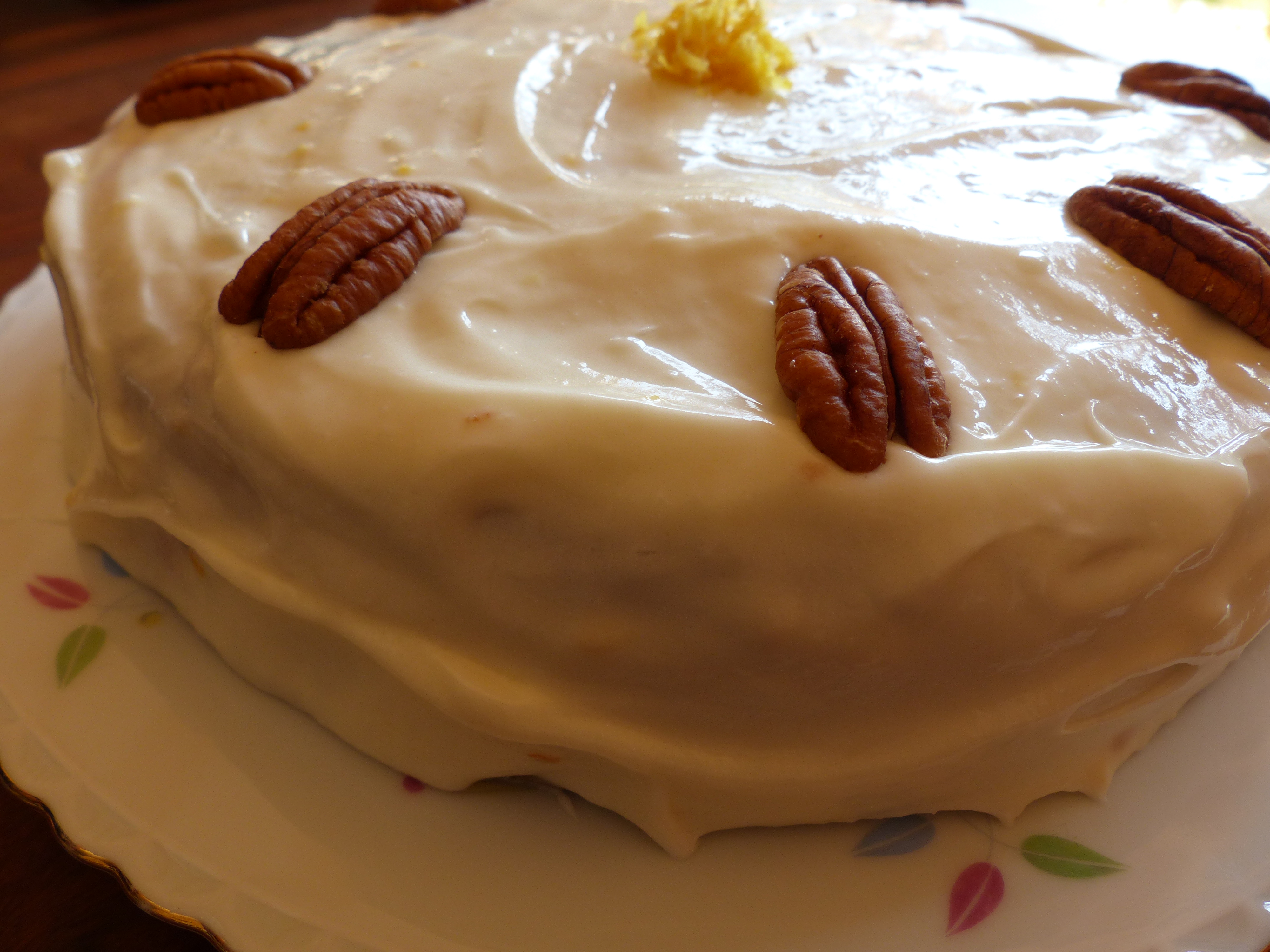Anyway, on Saturday morning I browsed through some of my baking books and the internet and eventually I put together my own recipe, for what I thought would make a delicious carrot cake with pecans and a nice lemon-y frosting.