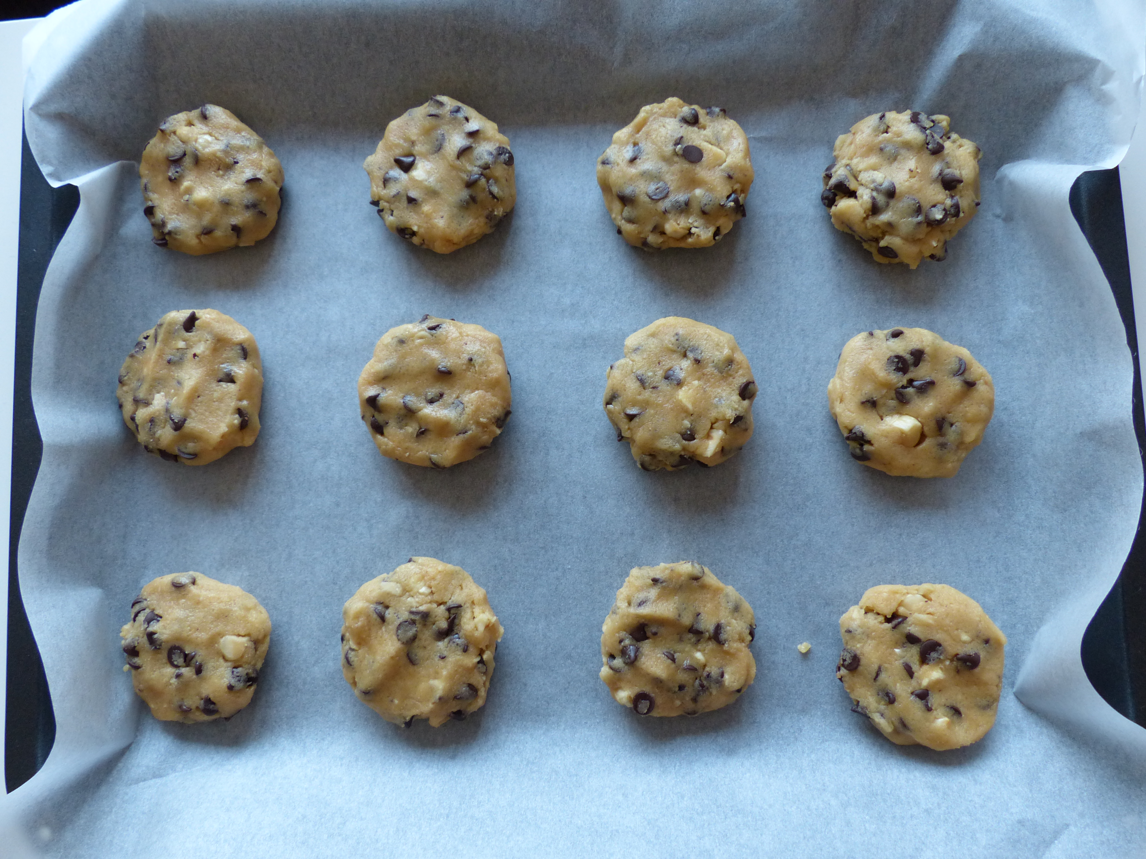 When my parents came back from their holiday they brought me a few packets of chocolate chips, and on Friday the time was finally there for me to once more try and find the perfect chocolate chip cookie. I based this recipe on the hazelnut coconut cookies I made a few weeks back because I thought their texture was really nice. I also added hazelnuts to the chocolate chip mix, because hazelnuts make everything better. That’s just a fact of life. Except if you’ve got a nut allergy. Then hazelnuts really suck.