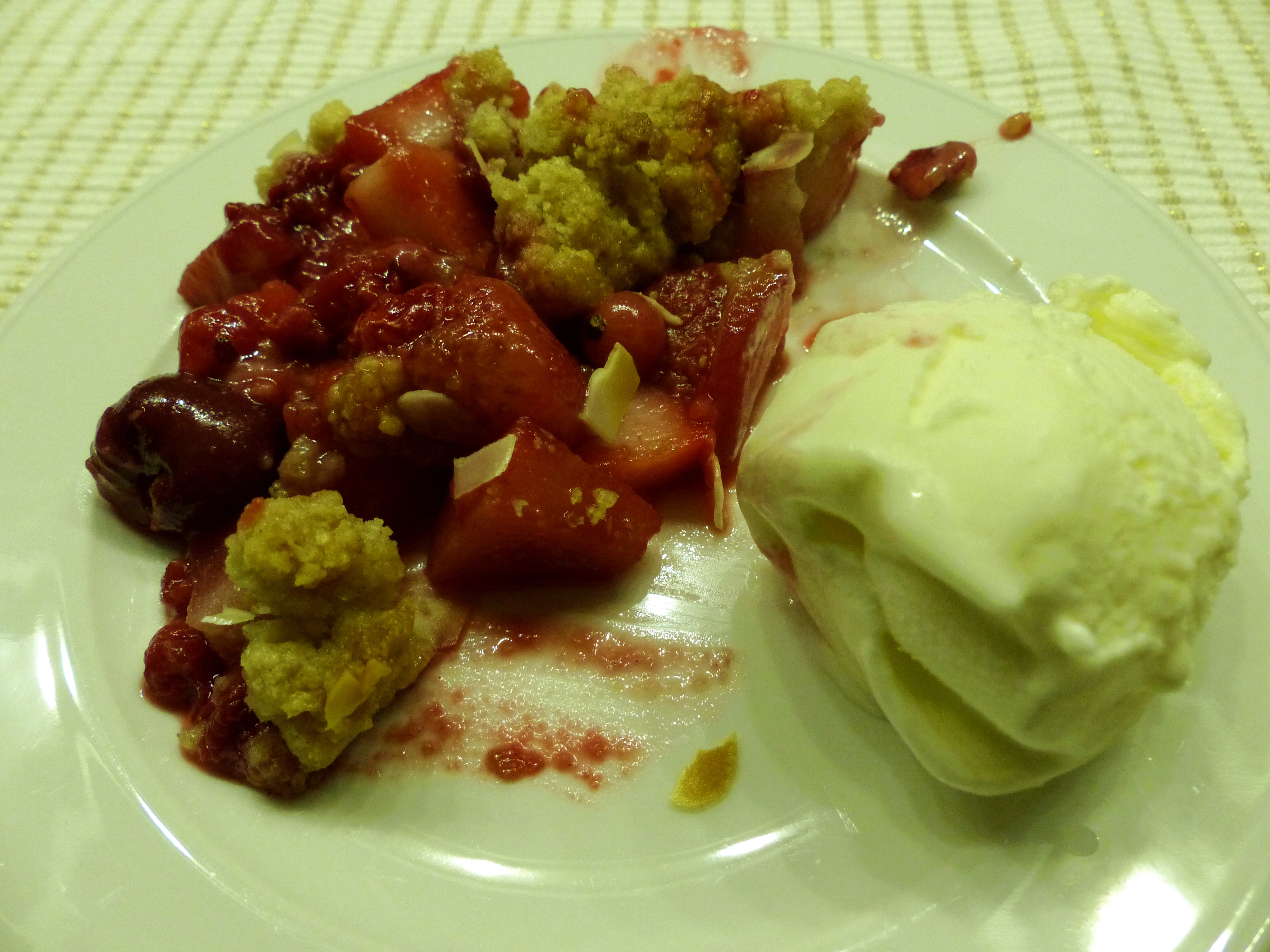 I turned 21 on Tuesday, and of course I needed to bake something for the occasion. What’s a birthday without some home made sweetness to munch on? I had a lovely dinner with my parents, grandparents and aunt on Monday, and made an absolutely delicious crumble for dessert. It included all kinds of berries and a couple of pears. Read on for the recipe!