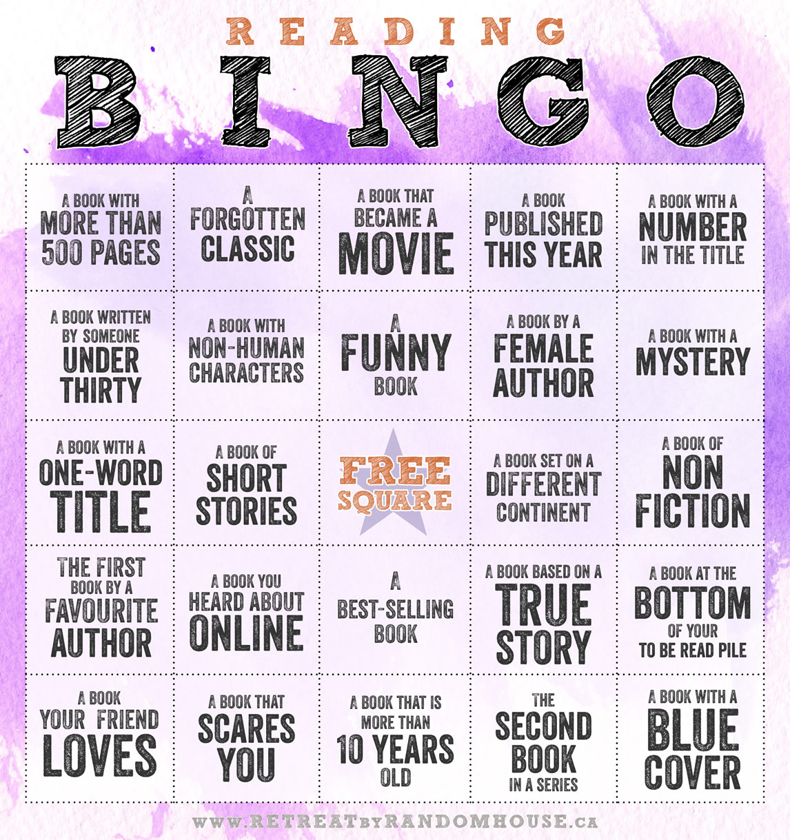 Last week, the lovely Cathy from 746 Books played reading bingo with the books she’s read since she started her blog. It seemed like so much fun that I’ve decided to see how far I get on the Reading Bingo chart! I’m only using the books I’ve read this year (since I’ve got those on a neat little Excel spreadsheet). Spoiler alert: I didn’t manage to get all the boxes ticked, but that doesn’t matter, ’cause it was still fun to do!