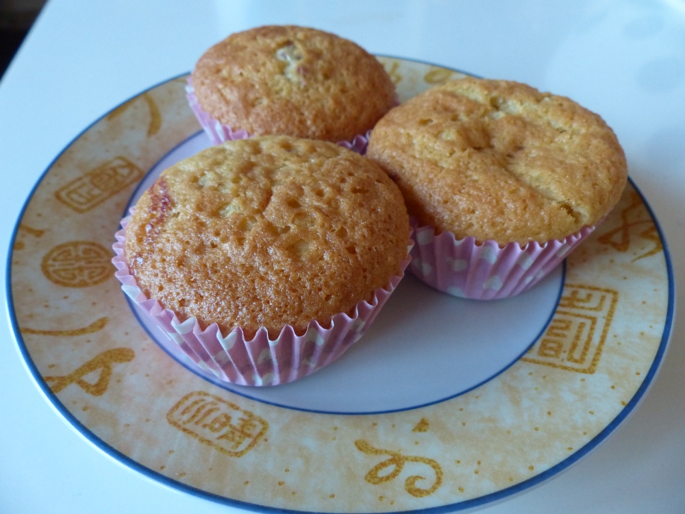 1. yummy . they are great and no self respecting girl would leave them on the plate. Next time try less sugar, a little orange juice or apple or lemon. It may soften the pink blow. The juis adds a tartness to the berries. bugger it WHo cares make more b cos from here they look scrummy.