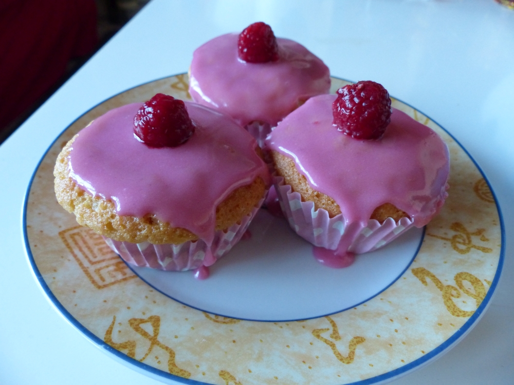 I’ve used a bunch of them to make smoothies, but decided to bake something with them this week: cupcakes, to be exact. I didn’t realise exactly how pink they’d turn out, so, in hindsight, perhaps I shouldn’t have chosen pink paper cases to bake them in. They still look scrumptious, though! Plus, the colour of the icing is completely natural: all you need is some raspberry juice.