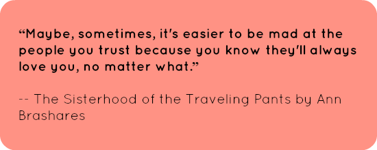 When I started making this list I knew immediately I had to include The Sisterhood of the Traveling Pants because those books meant so much to me growing up. And this quote is painfully true.
