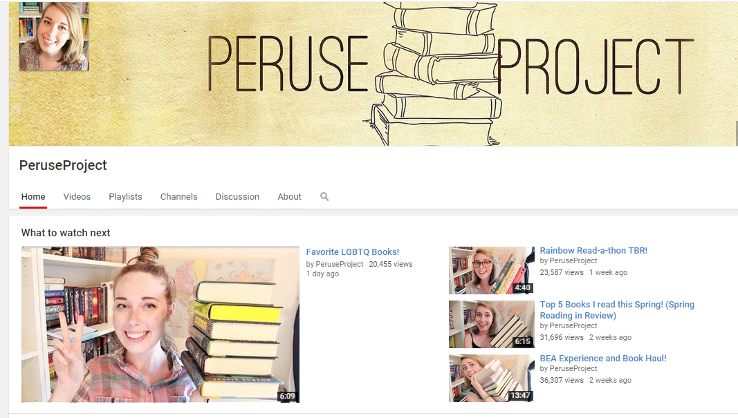 First up is a YouTube channel that I’ve only discovered about two weeks ago, even though it’s a pretty big channel with almost 100k subscribers. I’m talking about PeruseProject by the lovely Regan. She does the usual like book hauls, tags and monthly wrap ups, but she also has some really cool themed videos like “Rainy Day Book Recommendations” among others. I mainly just love the way she talks about books quite in depth without giving any of the plot away and her enthusiasm for reading. I’d definitely recommend paying her channel a visit if you haven’t yet!
