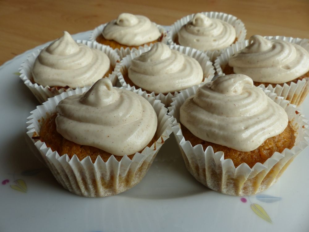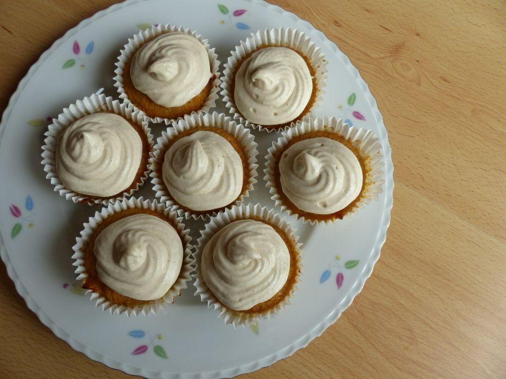 Now about the cupcake itself: I modified my carrot cake recipe for this recipe and the cupcakes came out absolutely lovely. The cinnamon frosting adds the finishing touch – it’s a perfect treat for this time of year.