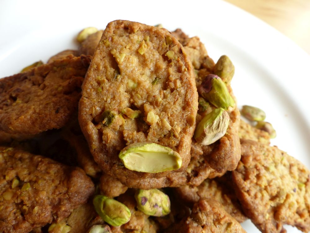 Initially, my plan for today was to come up with a nice Christmas cookie recipe, as I did last year around this time, but I couldn’t come up with something nice and Christmassy that I actually felt like eating, too. I only knew I wanted to bake pistachio cookies, so in the end I just decided to ignore the obvious theme that’s been holding the blogosphere in its firm grip for the last month, and just bake pistachio cookies – plain and simple.
