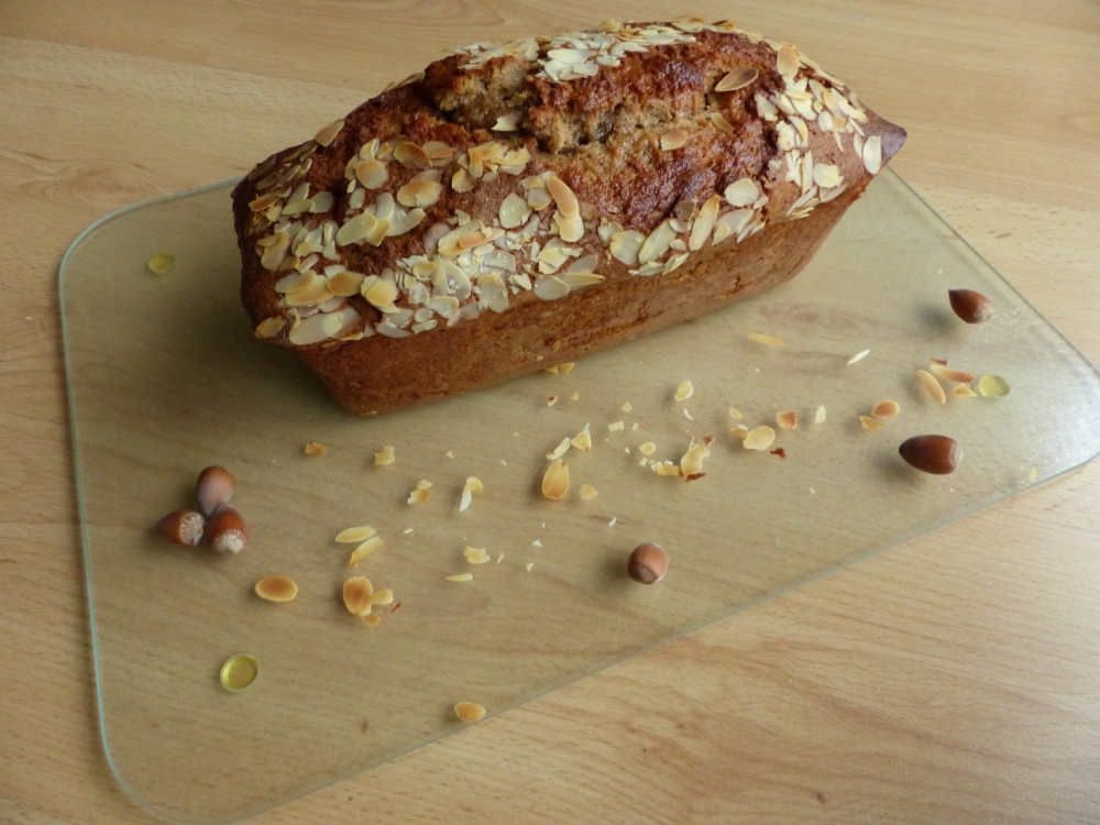 And that’s it! You’ve got yourself a lovely banana bread with hazelnuts. Enjoy!