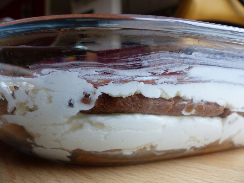 I met up with a couple of my high school friends last weekend, and we’d agreed to all bring something to eat so the host wouldn’t have to slave away in the kitchen for hours. I was in charge of dessert (which I usually am) and decided to go for a tiramisu. I also felt like making something with speculaas, though, so I put the two together and made a speculaas tiramisu instead!