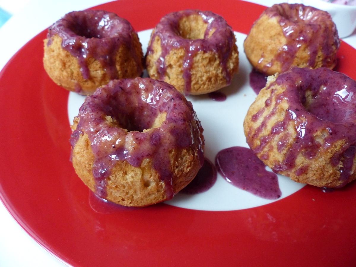 And there you have it! Your own Banana and Blueberry Baby Bundt Cakes! The glaze will more or less set, but I took my pictures (and ate at least one of the cakes) before that. Enjoy!